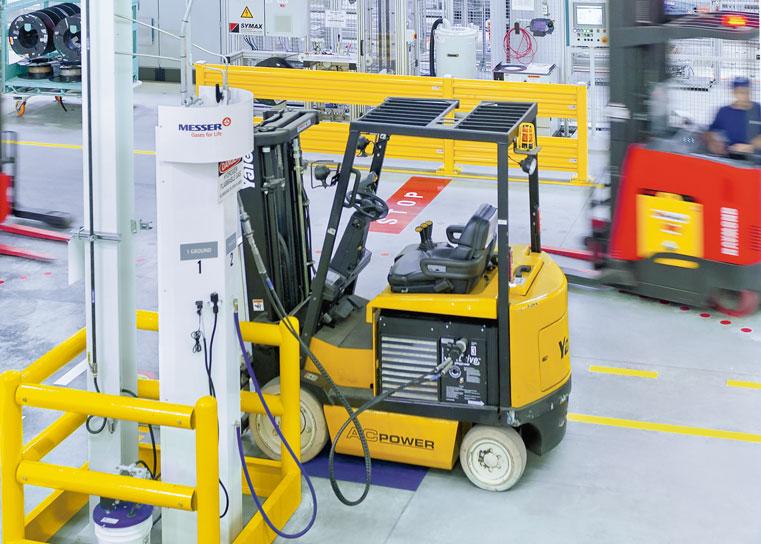 In den USA betreibt Messer Industries seit 15 Jahren ein erfolgreiches Geschäft mit Wasserstoff für Mobilitätsanwendungen. Aktuell werden zwölf Standorte beliefert, darunter das BMW-Werk in Spartanburg, South Carolina – einer der weltweit größten Einsatzorte für Flurförderfahrzeuge. Ein weiterer Schwerpunkt ist der Bussektor: Neue Gesetze in Kalifornien (CARB / Innovative Clean Transit Regulation) und Europa (Richtlinie 2009/33/EG über die Förderung sauberer und energieeffizienter Straßenfahrzeuge) verpflichten Busunternehmer dazu, ihre Flotten bis 2030 zunehmend auf emissionsfreie Antriebe umzustellen. 2020 gelang es Messer Industries, einen neuen Weltrekord für die reihenweise Betankung von brennstoffzellenbetriebenen Bussen aufzustellen. Auch in China ist Messer für die Versorgung von brennstoffzellenbetriebenen Bussen aktiv: In Zhangjiagang und Chengdu beliefern wir entsprechende Wasserstofftankstellen.